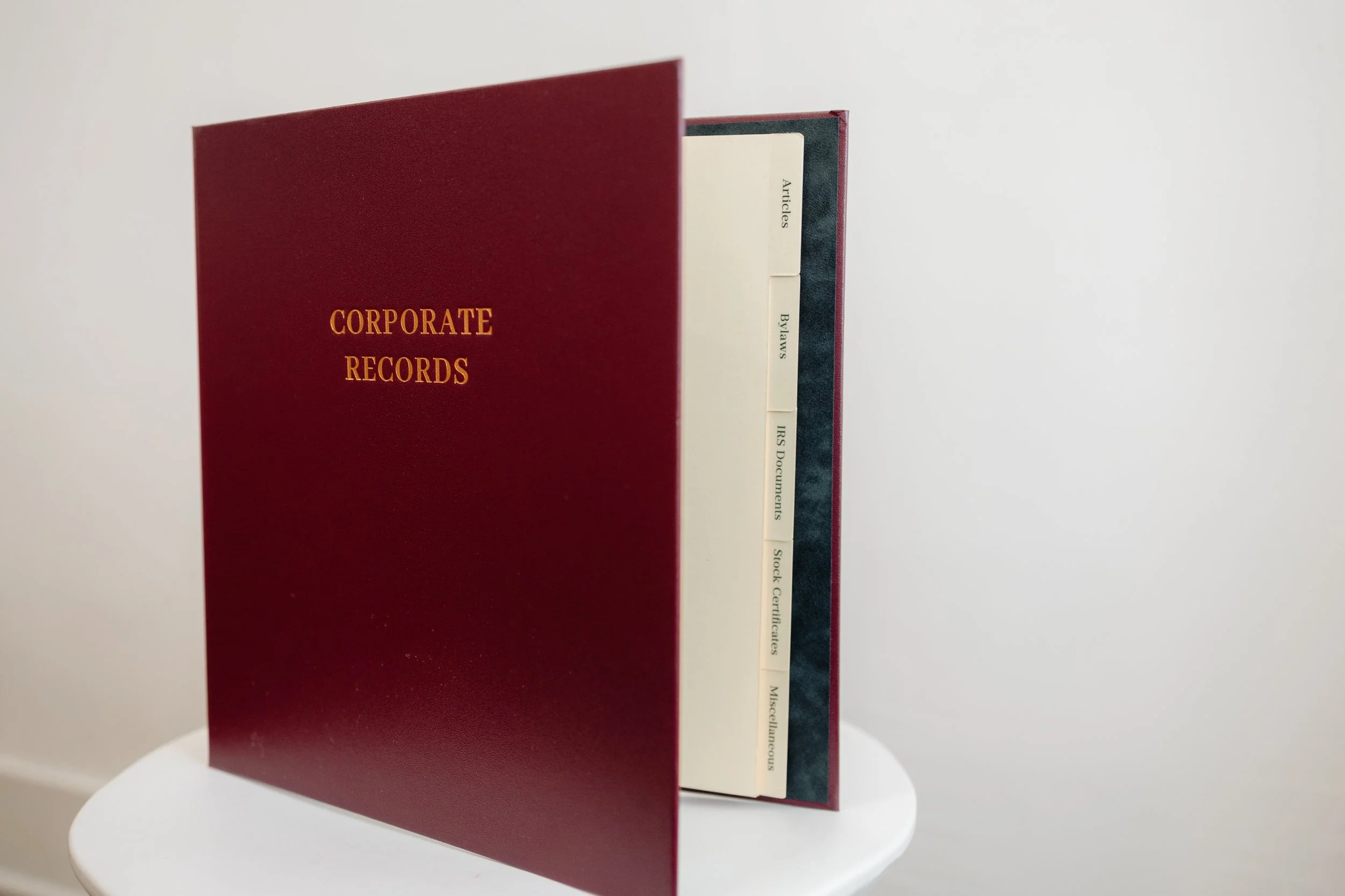 Comes fully loaded with 11 corporate-specific tabs, stock certificate sheets, and a minutes/ledger section—ready for your client's entity needs.Protective Slipcase Included